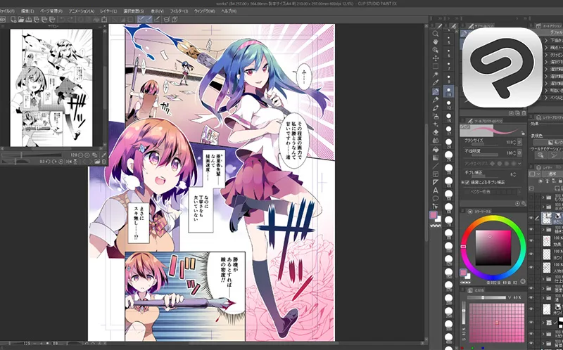 イラスト・漫画制作の業界スタンダードソフトです。多彩な機能が用意されており、制作を通して表現や技術の引き出しを増やすことができます。デジタルデータとして、WebやSNS、印刷など幅広い用途に活用できるのも魅力です。